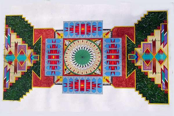 This painting has a lot of mathematical, cyclical detail and double-axis symmetry, reminiscent of the DNA helical molecule. |