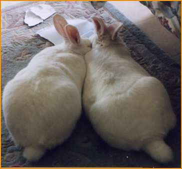 Buns died in January of 1999 from a condition called gastro-intestinal (GI) stasis, also known as ileitis. This is when their digestive system stops functioning. Rabbits have a very delicate digestive system and ileitis is an insidious, silent killer with not many obvious symptoms. Coupled with the naturally stoic demeanor of rabbits, ileitis can go undiagnosed until it is too late. Sadly, that is what happened to Buns. He died in the veterinarian's office while I was at work. I will always remember him hopping joyfully around the backyard on warm spring mornings. He died much too soon; I still think about him and miss him to this day. |