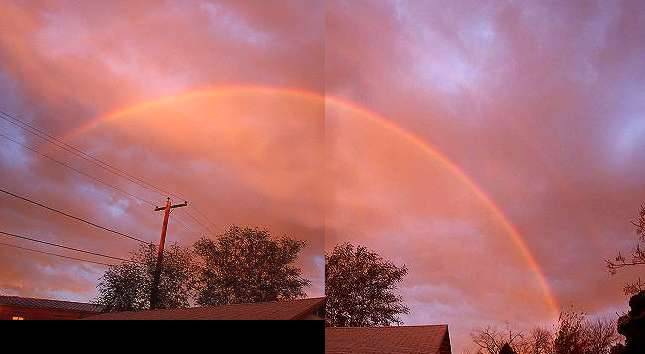 A strong cold front sweeping down from the Gulf of Alaska creates a rare late December rainbow above my backyard. |