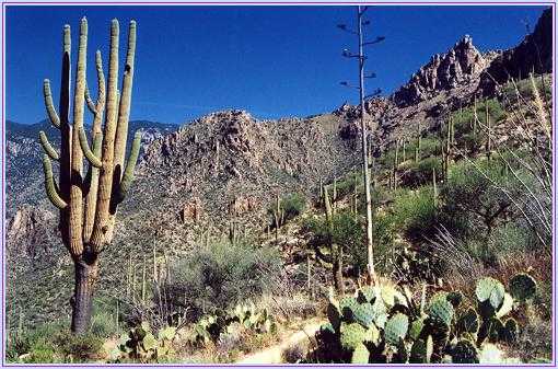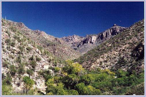 Near the city of Tucson is a very lovely canyon area known as Sabino Canyon, at the foot of the Santa Catalina mountains. This is a very beautiful canyon area and a perfect example of the beauty and vitality of the Sonoran desert. |
