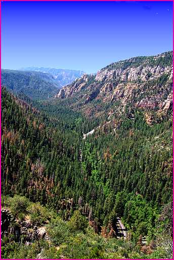This is the beautiful Oak Creek canyon area north of Sedona, on the way to Flagstaff. Photos taken June 2003.